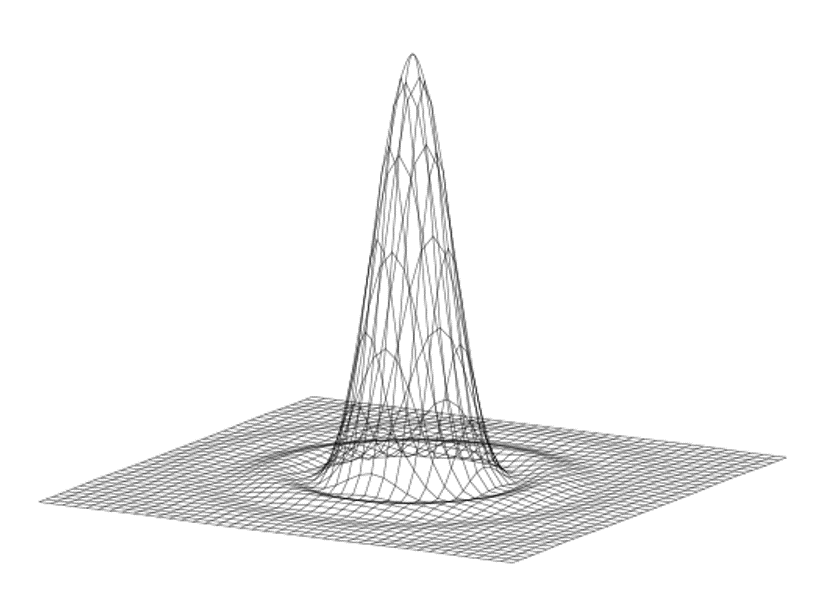 で表される。 このパターンは、エアリーディスクと呼ばれる明るい円盤の周りを同心円の明暗のリング(回折環)が取り巻いている。回折限界も参照。