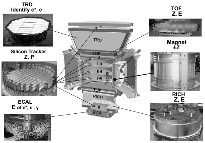 磁場を利用して高エネルギー宇宙線や未知の粒子の電荷と運動量を測定する装置。Alpha Magnetic Spectrometer の頭文字をとって AMSと略称される。米国エネルギー省が主スポンサーで、代表研究者サミュエル・ティンが16か国(AMS-02の場合)からなる国際チームを率いている。