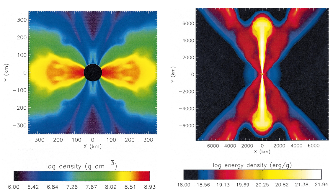 コラプサーモデルでは、太陽の10倍程度より重い星が重力崩壊したときに、中心からジェットや円盤風を放出して、ガンマ線バーストや極超新星爆発を起こす。星が重く回転が速いので、中心にブラックホールと降着円盤ができて、ジェットや円盤風を駆動すると考えられている。ブラックホールではなく、マグネターなどの中性子星が中心エンジンの役目を果たす可能性もある。