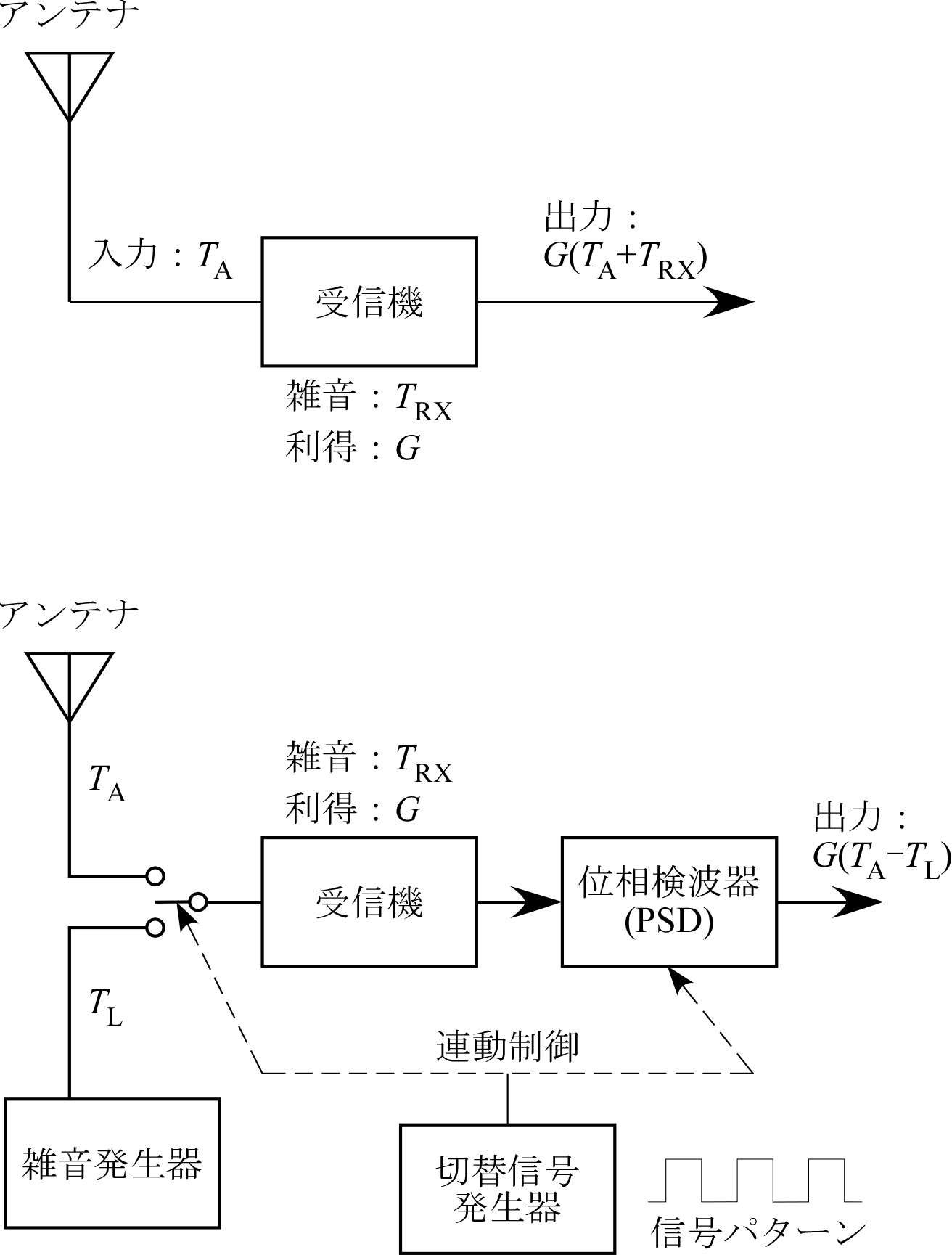 ディッケスイッチを用いて、雑音発生器からの強度が既知の雑音と測定対象との比較を行うことで電波強度を測定する装置。受信機の利得変動の影響を小さくできる。ただし、この効果が有効に働くには、2つの入力の強度がほぼ等しい(理想的には完全に一致する)必要がある。したがって、測定すべき信号とほぼ等しい雑音信号を安定した強度で発生させる雑音源が必要となる。電波天文学の場合には、天体からの信号よりも、受信機や地球大気が発生する雑音の方がずっと大きいため、ディッケ放射計で用いる雑音源の強度は天体によらず一定の物を用いても十分に機能する。