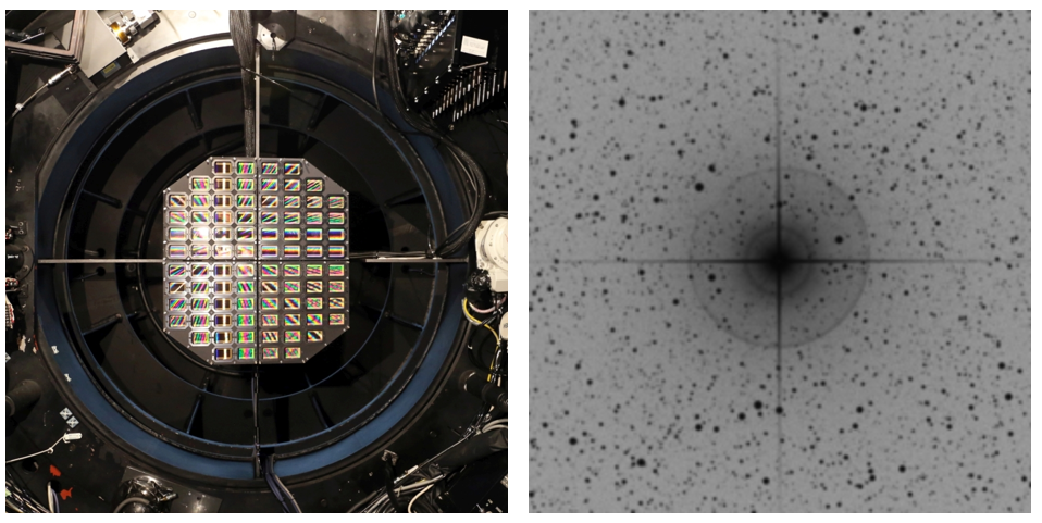 図1にさまざまなスパイダーのパターンによる回折スパイクの模式図を示す。図2左は東京大学木曽観測所の105 cmシュミット望遠鏡の焦点面、右はかつてこの焦点面に置かれた大型写真乾板で撮影された明るい星の回折スパイク(リングはハレーションによるもの)である。現在は焦点面には写真乾板でなく、左図に示す84台のCMOSセンサーを並べた「トモエゴゼン」カメラが置かれているが、スパイダーは変わっていない。図3はジェイムズウエッブ宇宙望遠鏡の近赤外カメラの画像に見られる回折スパイクで、モザイク主鏡の端の直線部による6本の明るく長い線条に、副鏡を支える3本の支柱による少し暗い3本の線条が重なった形をしている。