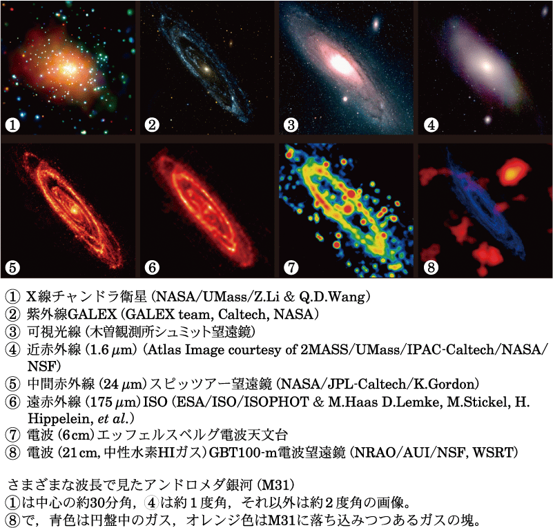 宇宙にはさまざまな天体があり、広範囲のエネルギーが関与するさまざまな活動をしているので、宇宙からはすべての波長の電磁波が地球に届く。そのうち、可視光線と赤外線の一部、および電波は地表まで届くが(図3:大気の窓を参照)、それ以外の電磁波は地球大気に吸収されて地表には届かない。ただし、波長数10 mより長い電波は、吸収されるのではなく電離圏 (電離層とも言う)で反射されるために地表に届かない。それらを観測するためには、人工衛星などの飛翔体を用いて大気外から観測する必要がある。一つの天体をさまざまな電磁波で見ると、電磁波を発生するメカニズムの違いによって、さまざまに違った姿が見える(図4、図5を参照)。宇宙で 起こる現象を理解するには、すべての波長の電磁波による観測が重要である。