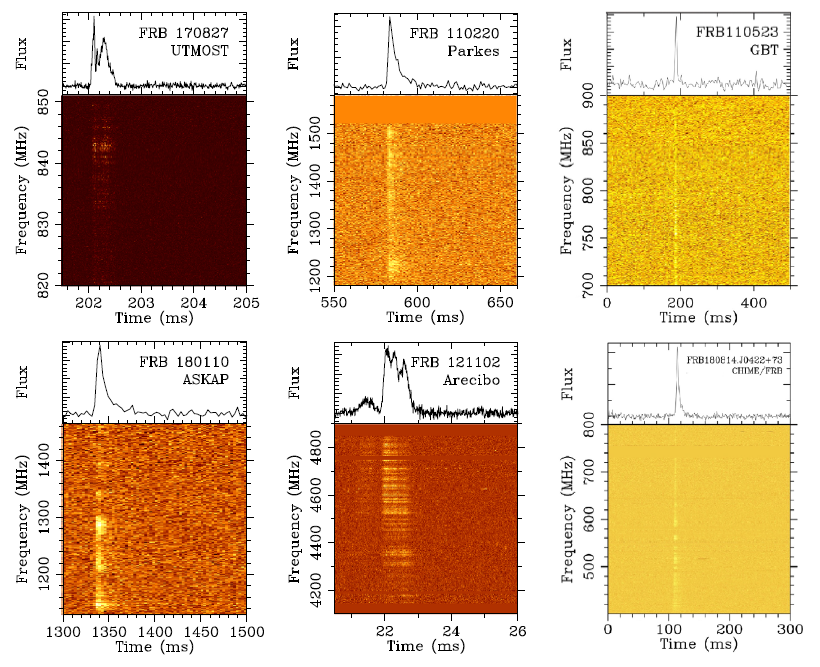 電波(110 MHzから8 GHz)で観測される、継続時間が数ミリ秒ないしそれ以下の強力な(約10 mJy-100 Jyの)電磁波パルス。英語(Fast Radio Burst)の頭文字を取ってFRBと呼ばれることも多い。個々のバーストはFRB YYMMDD、最近ではFRB YYYYMMDDXのように、FRBの後に年月日とアルファベットをつけて識別される。