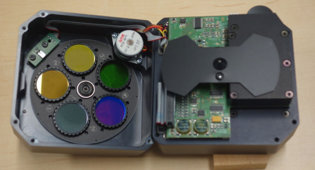 特定の範囲の電磁波を取り出す光学素子。天文学におけるフィルターは、厳密に波長帯を切り分ける必要性から誘電体多層膜を用いた干渉フィルターが多く用いられるが、可視光でのおおまかな広帯域測光の場合には安価な色ガラスによる吸収フィルターを用いることも可能である。波長幅が中心波長の数分の1の場合には広帯域フィルター、数百分の1の場合には狭帯域フィルターと呼ばれる。通常、広帯域フィルターの中心波長と波長幅は測光システムの種類により決められているものを用いる。このほか、特定方向の直線偏光成分だけを通す偏光フィルター、特定の波長を境に反射と透過により光を分けるダイクロイックミラー、波長によらず反射と透過により光量を分けるビームスプリッター(1:1に分けるものは特にハーフミラーという)、波長によらず一律に光量を落とすための減光フィルター(NDフィルターとも言う)などがある。
