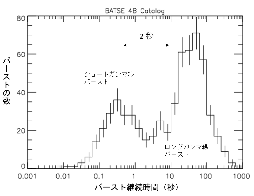 一方ショートガンマ線バーストは、二重中性子星連星が合体して生じた重力波がLIGOとVIRGOによって検出されてキロノバが出現したときに発生したことが確認されたので、このような現象に伴うものと考えられている。