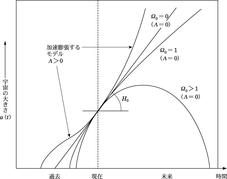 ハッブル定数の逆数で表される時間。宇宙年齢の目安となる。宇宙の大きさ(スケール因子)を縦軸に、時間を横軸に取った図を描いたとき、ハッブル定数は現在の時刻におけるグラフの接線の傾きとなる。この傾きを過去に外挿して縦軸がゼロ(宇宙の大きさがゼロ)になる時刻がビッグバンに相当する。この時刻から現在までがハッブル時間である(図参照)。言い換えれば、膨張率が現在の値と変わらないままで宇宙が膨張したとする場合の宇宙年齢がハッブル時間である。一般には、宇宙の膨張は過去ほど激しく、時間とともに万有引力の作用で減速しているので、実際の宇宙年齢はハッブル時間より短いと考えられていた。しかし、1998年頃から宇宙が現在は加速膨張していることがわかり、宇宙年齢は必ずしもハッブル時間より短いとはいえなくなった。ちなみに2020年時点で広く用いられたハッブル定数の推定値はプランク衛星のチームが報告した H0 = 67 km s-1 Mpc-1 で、ハッブル時間は146億年である。一方、観測データを総合して別途推定された宇宙年齢の最良推定値は138億年である。ハッブル-ルメートルの法則も参照。