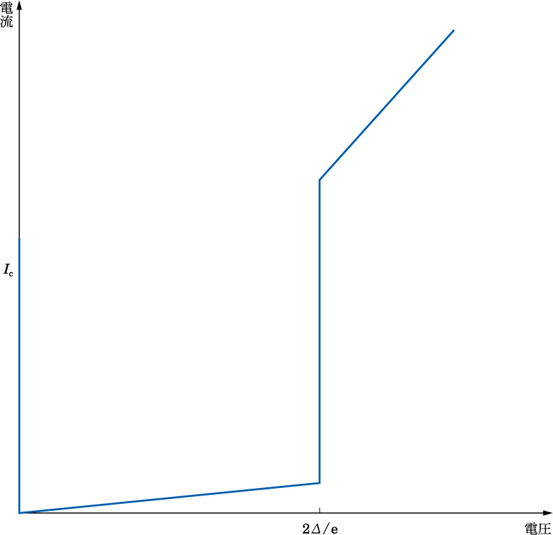 ジョセフソン接合は、薄い絶縁膜(Insulator)を超伝導膜(Superconductor)ではさんだ3層から構成され、頭文字をとってSIS接合とも呼ばれる。ジョセフソン接合には電子または超伝導電子対(Cooper pairと呼ばれる)のトンネル効果によって電流が流れ、図のような電流電圧特性(I-V curve)をもつ。ジョセフソン(B.D. Josephson)によって1962年に理論的に導かれた(B.D.Josephson, 1962, Physics Letters, 1, 251-253)。超伝導ミキサーも参照。