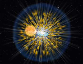 連星系において、一方の星から他方の星に向けて起こる物質の移動。質量交換とも呼ばれ、新星や矮新星などを引き起こす原因である。近接連星系においては、星の進化に伴って一方の星が膨張し、(内部臨界)ロッシュローブを超えると、表面の物質が相手の星のロッシュローブに流れ込む。流れ込んだ物質は、相手の星がロッシュローブに比べてそれほど小さくなければガスは直接星の表面に衝突するが、星が小さい場合には星の周りに形成される降着円盤を経て星の表面に落下する。また、2つの星がある程度離れている場合には、進化した星からの星風によって放出された物質が他方の星に降着する。多くのバリウム星やCH星など、連星に特有の組成異常がみられるのはこのためである。ロッシュモデル、化学特異星も参照。