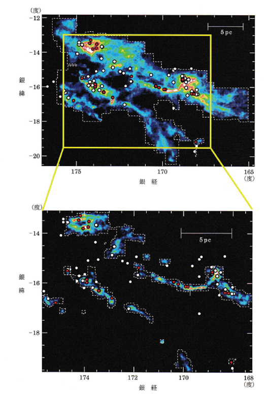 星間分子雲中で密度が高い領域を指す言葉。主要な成分である水素が主に水素分子状態(H2ガス)で存在している星間分子雲の温度は絶対温度 10 K 程度であるため、水素分子成分を輝線で観測することは困難である。そのため、比較的多数存在している一酸化炭素(CO)分子の電波領域の回転遷移輝線などで主に観測される。分子雲コアはその電波輝線強度の高い領域に対応している。十分に密度が高い領域では、ガス中に存在している星間ダストが熱的に放射する連続波電波も観測される。分子雲コアの中心では星が生成されると考えられている。第一のコアも参照。