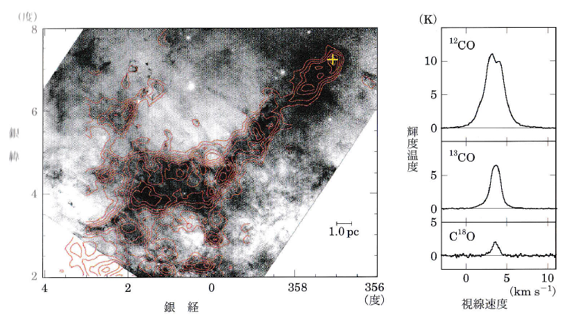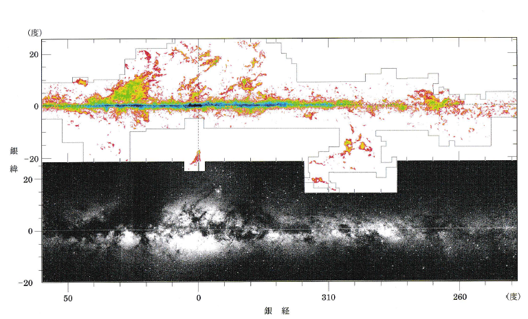 分子雲の温度では水素分子は回転運動しか励起されないため、対称2原子であるH2を輝線で観測することはほぼ不可能である。そのため、混在している他の分子や塵の放射で観測するのが通例である。その中で、歴史的にも最も古く、多くの観測データが蓄積されているのが、一酸化炭素(CO)分子の回転遷移輝線、特にCO(J=1-0)輝線である。他にも、HCN(シアン化水素)、CS(硫化炭素)、NH3(アンモニア)などがよく用いられている。