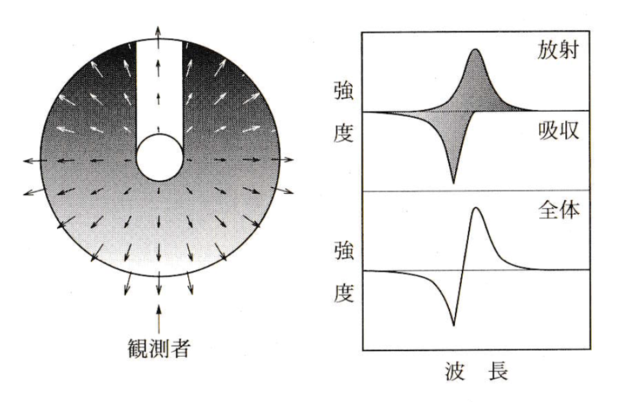 はくちょう座P星のスペクトルに見られるような輝線と吸収線が隣り合うスペクトル線の形状のこと。静止波長を中心とする強い輝線と短波長側にドップラー偏移した吸収線からなる。恒星からの高温ガスの流出(星風)があるときに観測される。名前の由来となったはくちょう座P星はB2型の超巨星で、表面からは秒速約200 kmで大量のガスが放出されている。