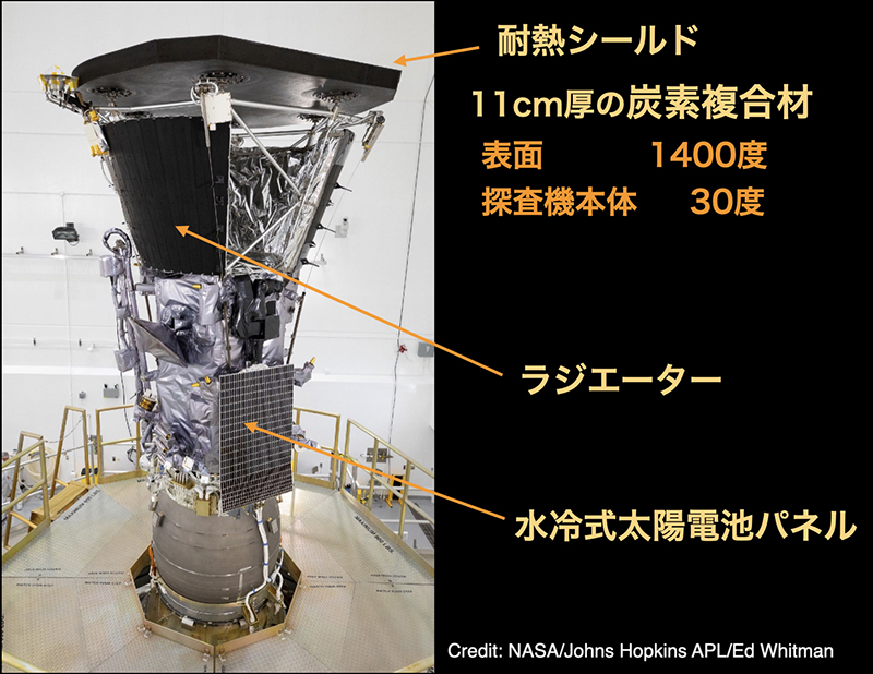 金星の重力を利用して計7回の減速スイングバイを行って軌道の近日点を太陽へ接近させ、最終的に太陽表面から約616万km(太陽半径の8.86倍)まで接近する予定。太陽からの熱や放射に耐えられるよう、厚さ11cmの炭素複合材で出来た太陽シールドを持ち、連結式の太陽電池パネルは水冷システムで低温に保たれ、太陽に接近する際には保護のために折りたたんでの収納が可能である。