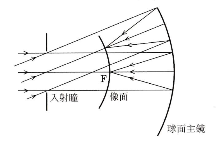 球面鏡は曲率中心に対して完全に対称であるため、曲率中心を通る光は球面鏡によって入射角度によらず同じように結像される。よって、曲率中心の位置に入射瞳(入射絞り)を置くと、入射角度によらず一様に結像する光学系を作ることができる。対称性により、このような光学系には、原理的にコマ収差や非点収差がない。言い換えれば非常に広い視野を持つ光学系が実現できることになる。しかし、球面鏡には球面収差があり、良像を得ようとすれば入射瞳を非常に小さく絞らなければならない。シュミットは、球面鏡の曲率中心に、中央部が凸レンズ、周辺部が凹レンズとなっている薄い補正板を置いて、焦点面で球面収差を除去することのできる望遠鏡を考案した。これがシュミット望遠鏡である。補正板は非球面板で、その曲面はおおよそ中心からの距離に対する4次式で表せる。ただし、より正確には偶数次項の高次多項式となる。シュミット望遠鏡は非常に広い視野を持つが、焦点面が球面となるため、検出器をその球面に沿うように配置するか、写野平坦化レンズを併用しなければならない。