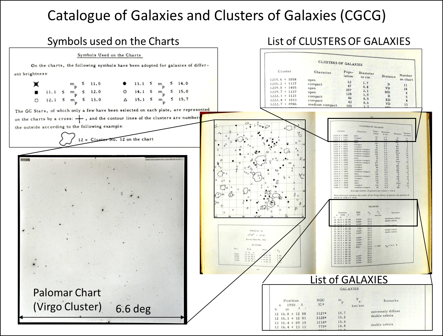 1961年から68年にかけて、共同研究者とともに、パロマー天文台スカイサーベイの写真乾板の眼視検査から、約28,000銀河と9700銀河団を検出し、それらを記録した6巻のカタログ、「Catalogue of Galaxies and Clusters of Galaxies: CGCG)」を刊行した。CGCGと略称されるこのカタログには15.5等級より明るい銀河はほぼ全て含まれるという高い完全性を有していたため、21世紀になって新たな銀河サーベイが出現するまで30年近く観測的宇宙論研究の基礎データとなった。